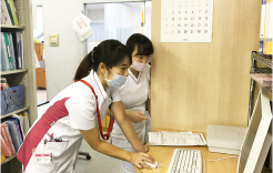 現場復帰に不安な気持ちがある看護師さんも安心して勤務ができるように、これまでのご経験に応じて教育・サポートを行っています。経験年数が浅い方には、業務・看護技術などに関して相談役の看護師を決めています。